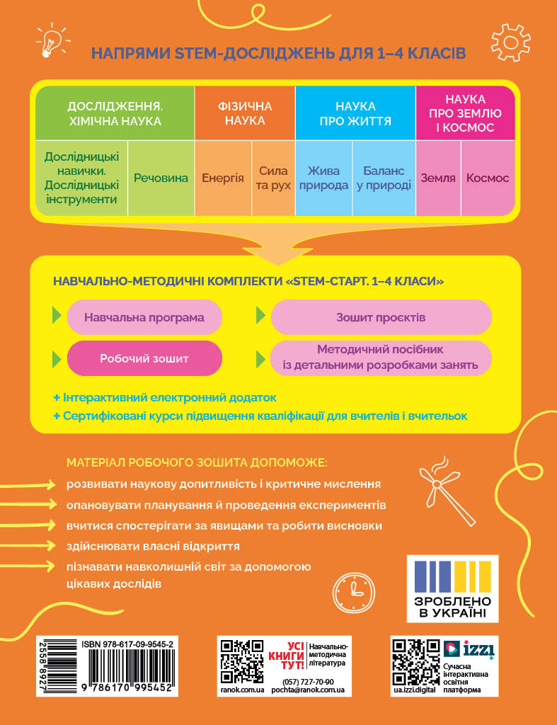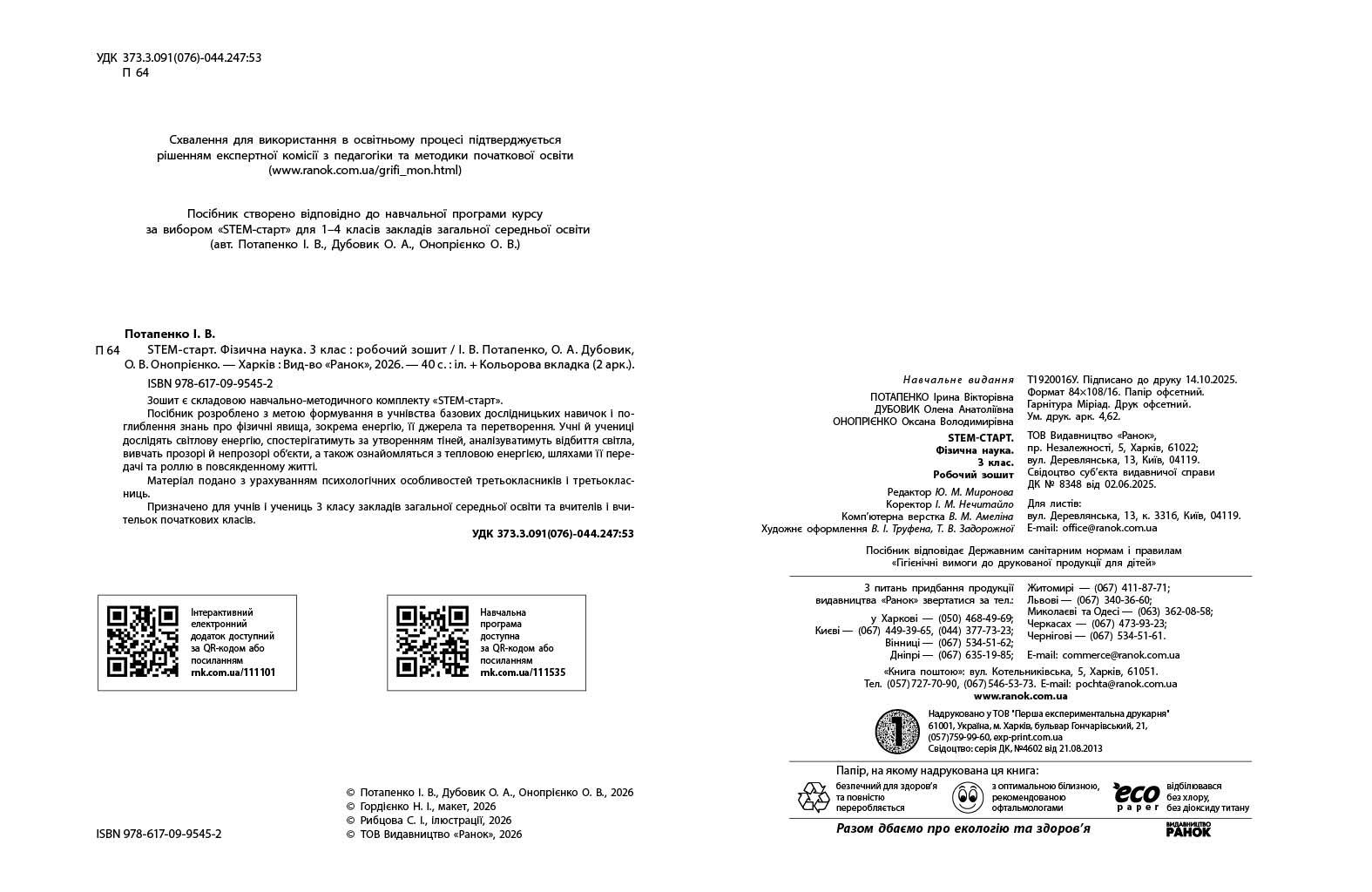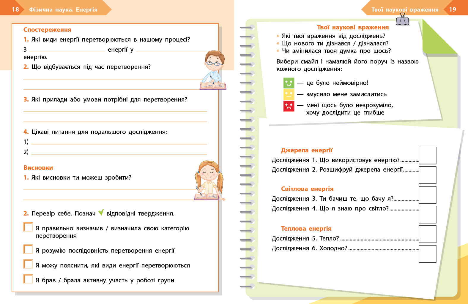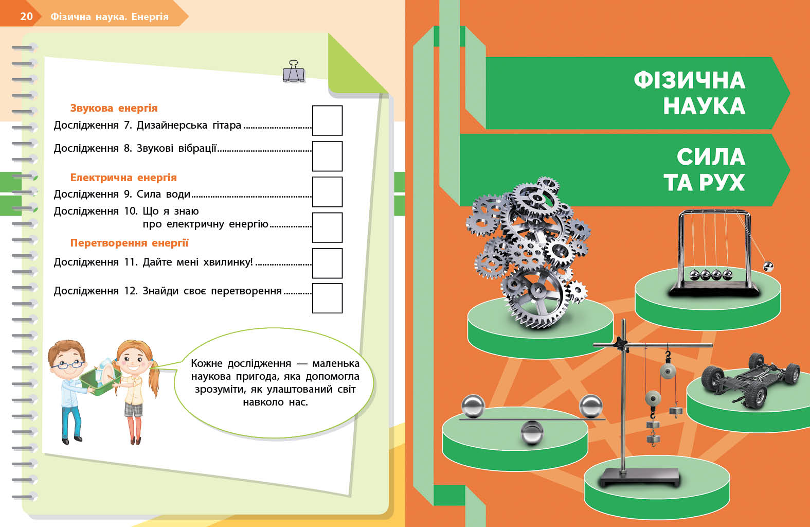 Зошит є складовою навчально-методичного комплекту «STEM-старт». Посібник розроблено з метою формування в учнівства базових дослідницьких навичок і поглиблення знань про фізичні явища, зокрема енергію, її джерела та перетворення.