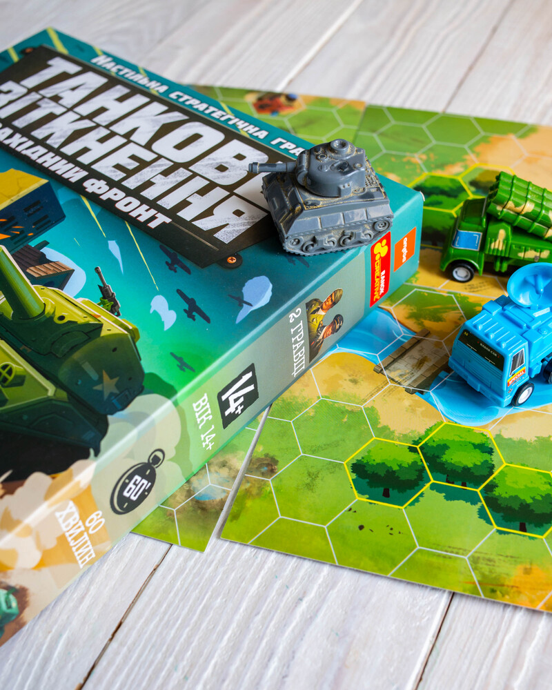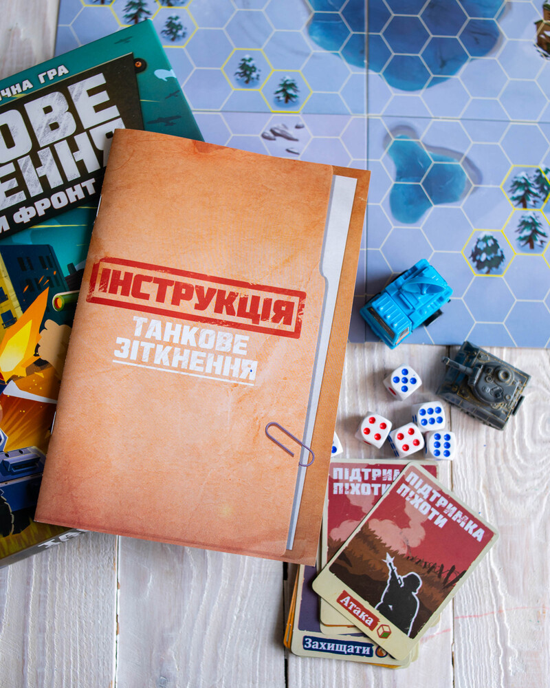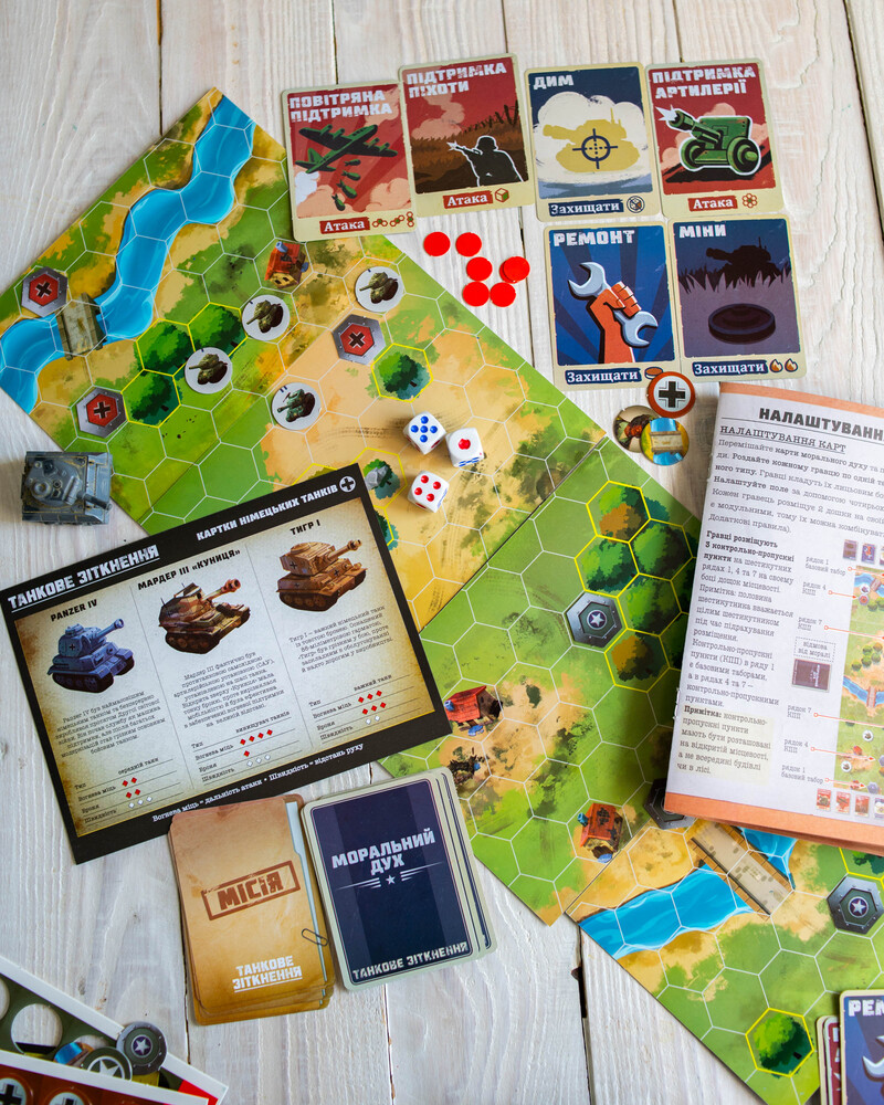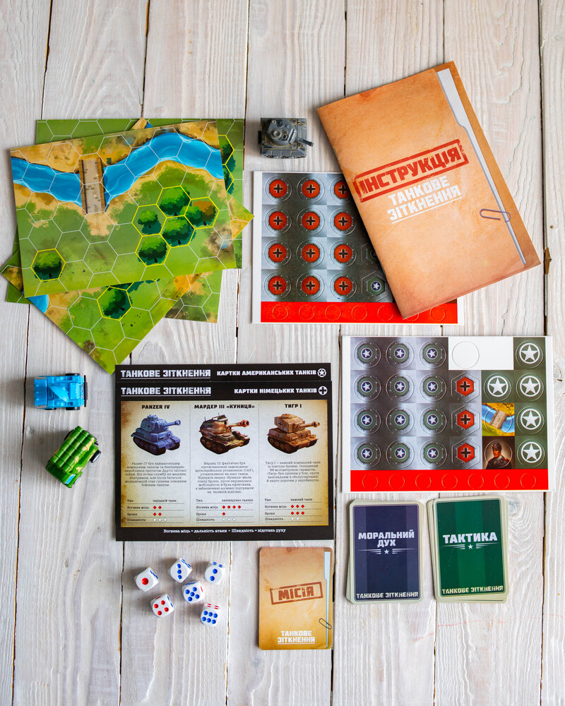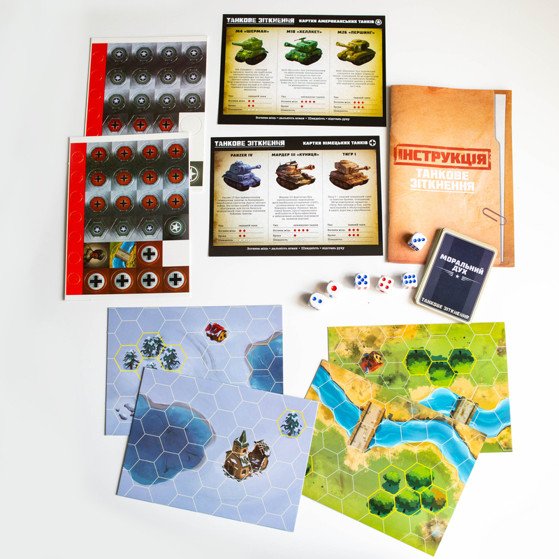 Настільна стратегічна гра «Танкове зіткнення. Західний фронт» — це справжній виклик для тих, хто втомився від екранів і хоче бачити суперника наживо. Втомився від компʼютерних стратегій? Обирай реальну тактичну боротьбу! Гра створена для двох гравців і перенесе вас у світ танкових баталій часів Другої світової війни. У бою зійдуться 6 типів легендарних американських і німецьких танків.