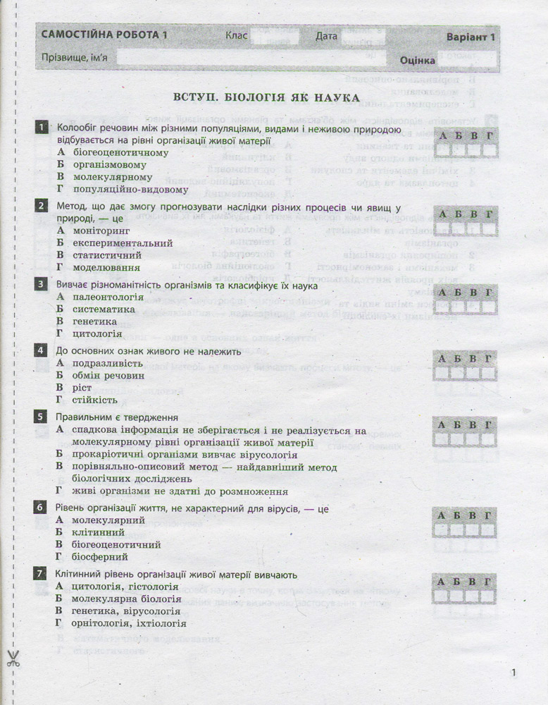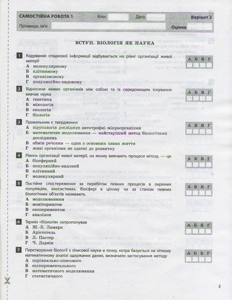 Тестовий контроль знань. Біологія 9 кл ОНОВЛЕНА ПРОГРАМА