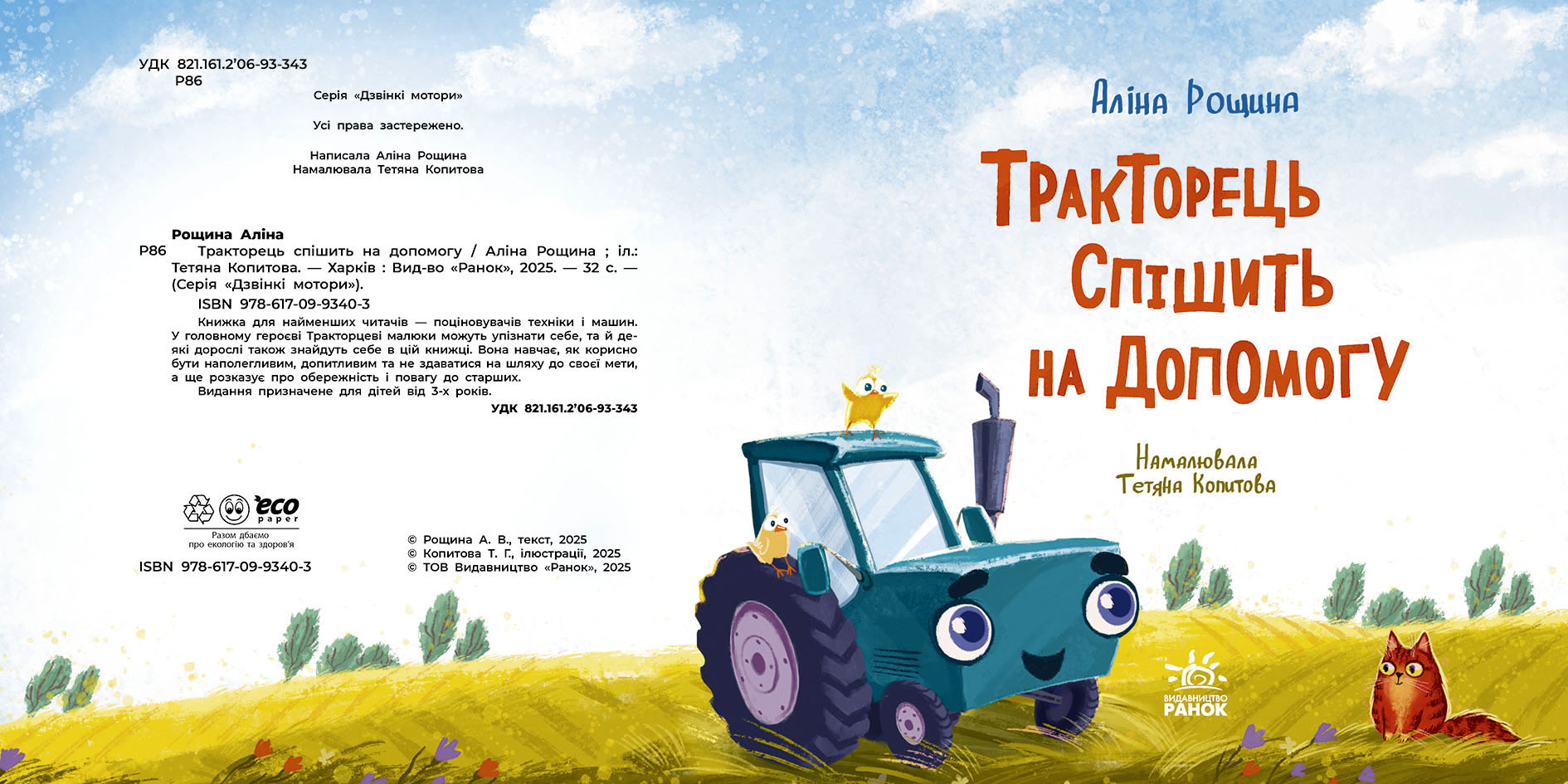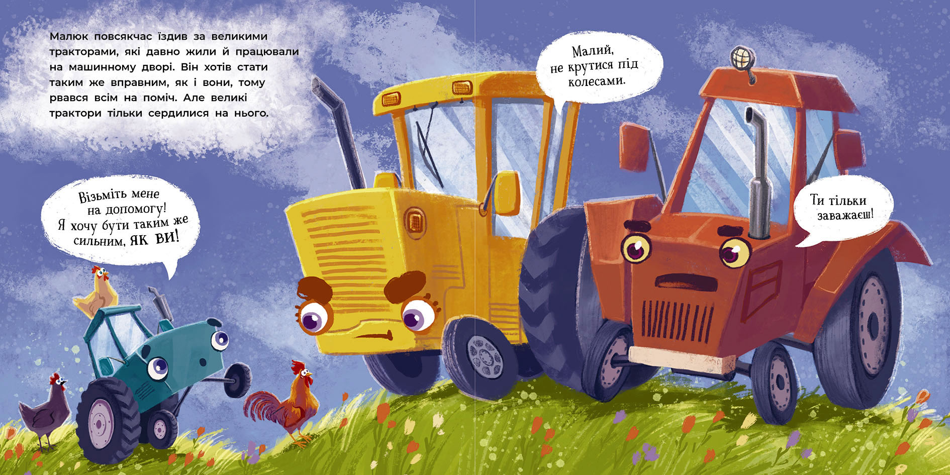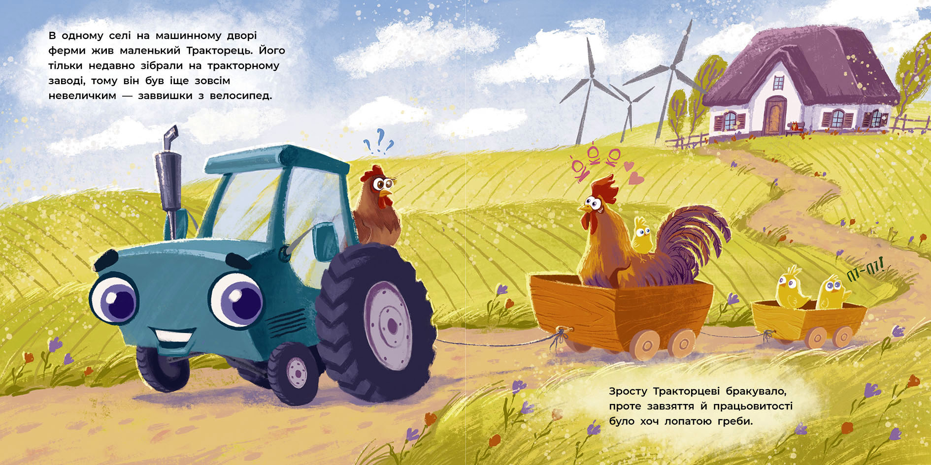 Книжка для найменших читачів — поціновувачів техніки і машин. У головному героєві Тракторцеві малюки можуть упізнати себе, та й деякі дорослі також знайдуть себе в цій книжці. Вона навчає, як корисно бути наполегливим, допитливим та не здаватися на шляху до своєї мети, а ще розказує про обережність і повагу до старших. Видання призначене для дітей від 3-х років.