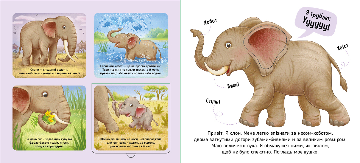 Тваринки, що мешкають на сторінках цієї книжки, не тільки добрі та веселі, а й… пухнасті. Кожну тваринку можна погладити і познайомитися з нею ближче. Малюк дізнається все найцікавіше про нового друга: що їсть, де живе і які має вподобання. Окрім тактильної вставки, на кожному розвороті дитину чекає таємне віконце!