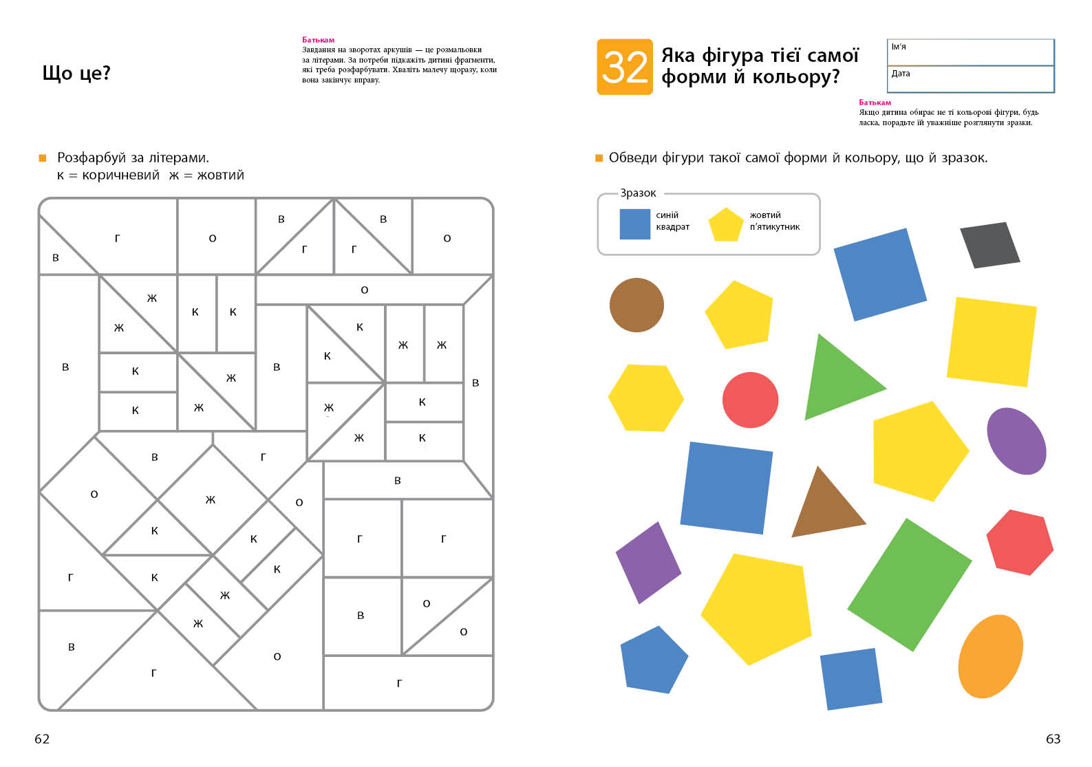 Книга для дітей, які вже вміють користуватися олівцем чи восковою крейдою. Малюк продовжуватиме розвивати ці навички, познайомиться з основними фігурами й кольорами та тренуватиме дрібну моторику.