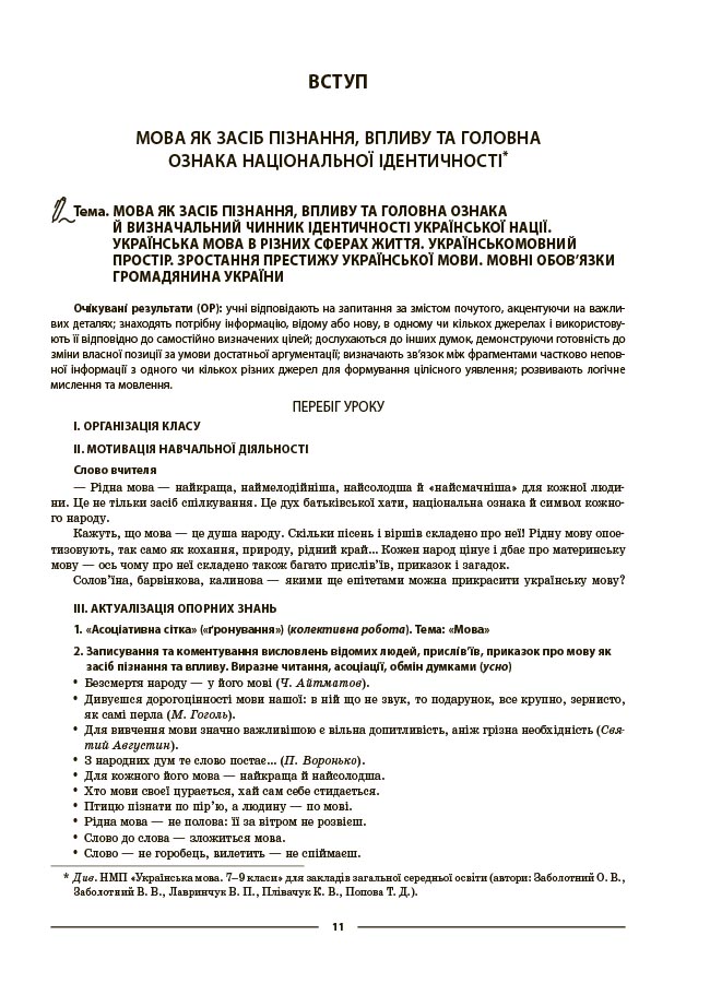 (автори: Заболотний О. В., Заболотний В. В., Лавринчук В. П., Плівачук К. В., Попова Т. Д.) та «Українська мова. 7–9 класи» для закладів