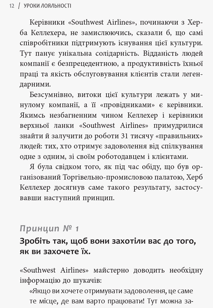 Книга Лоррейн Ґраббс, президента компанії «Lessons іn Loyalty», адресована організаціям і керівникам усіх рівнів. Мета її — дати бізнес-лідерам інструменти та ресурси для створення позитивної і продуктивної корпоративної культури в рамках концепції: «Задоволений клієнт починається із задоволеного співробітника».