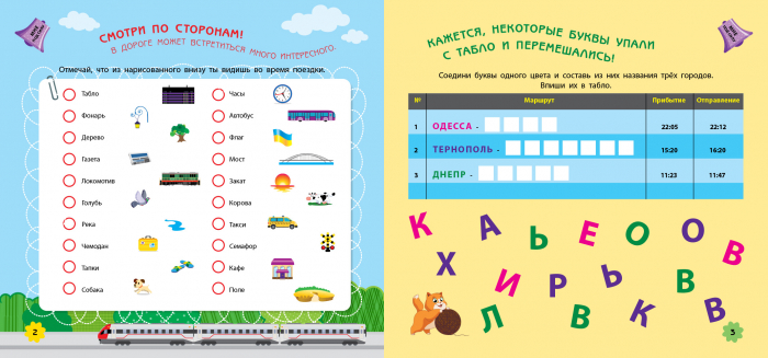 Книжки цієї серії стануть гарним другом дошкільнику під час подорожі. Завдяки книжкам дитина не нудьгуватиме у дорозі, адже буде виконувати завдання, пов’язані з поїздкою. Вони складені таким чином, що дитина зможе легко розвинути спостережливість, логіку, навички лічби та підготуватися до школи.
