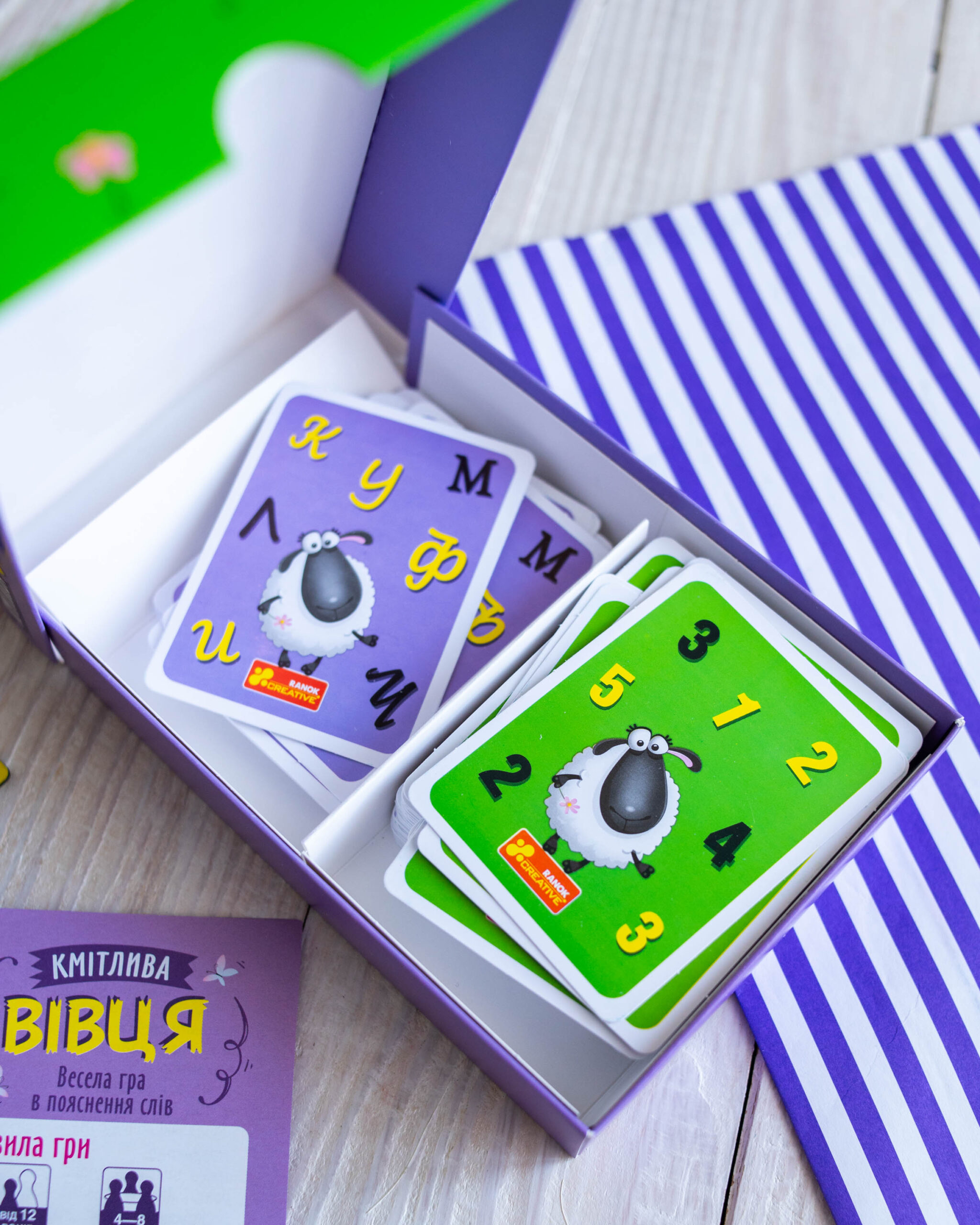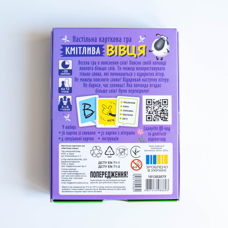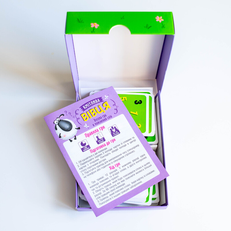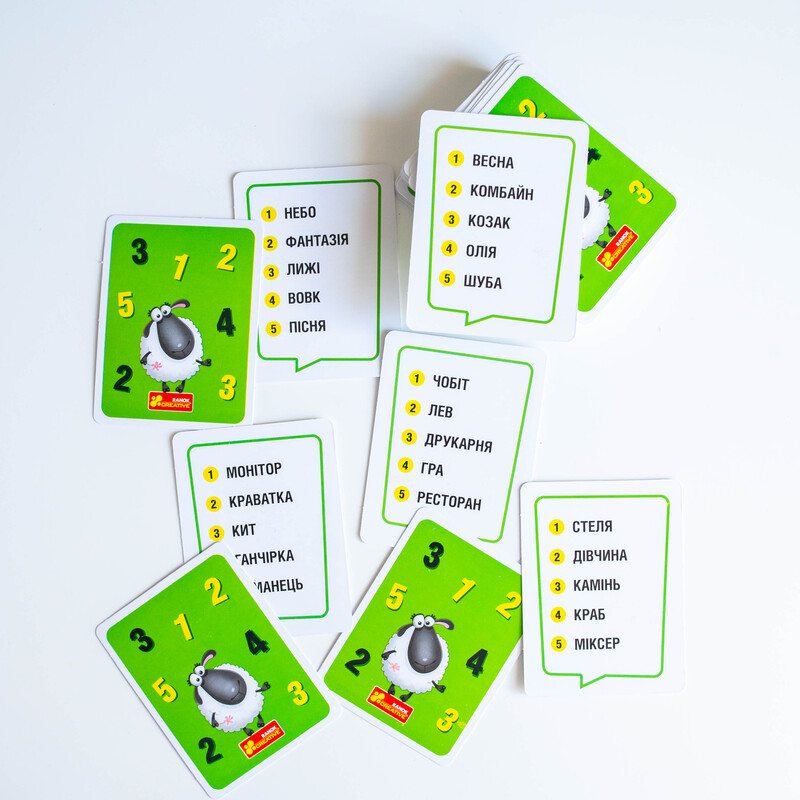 Випробуйте свою кмітливість у захопливій настільній грі “Кмітлива Вівця”! Це карткова гра, яка змусить мислити швидко та креативно!