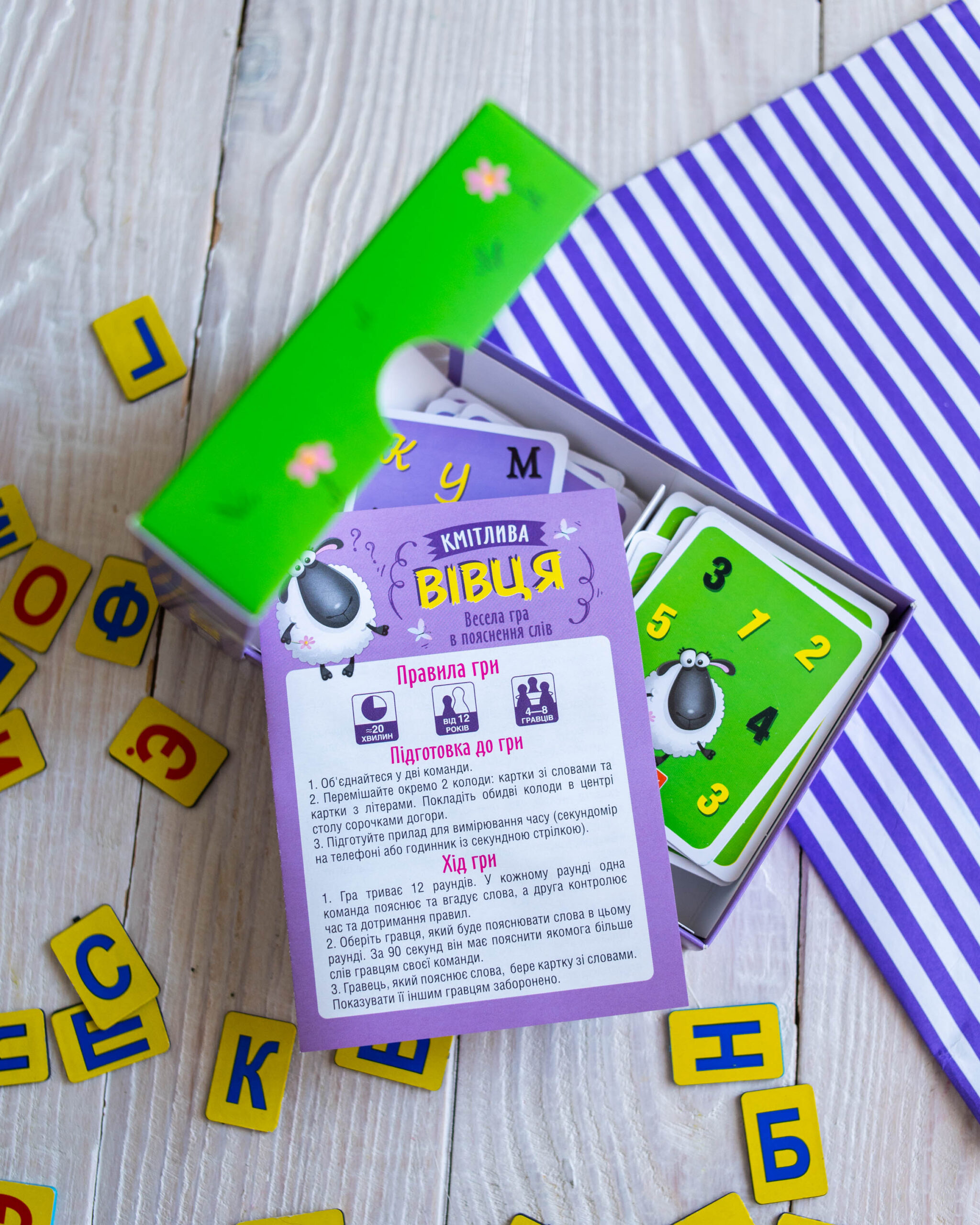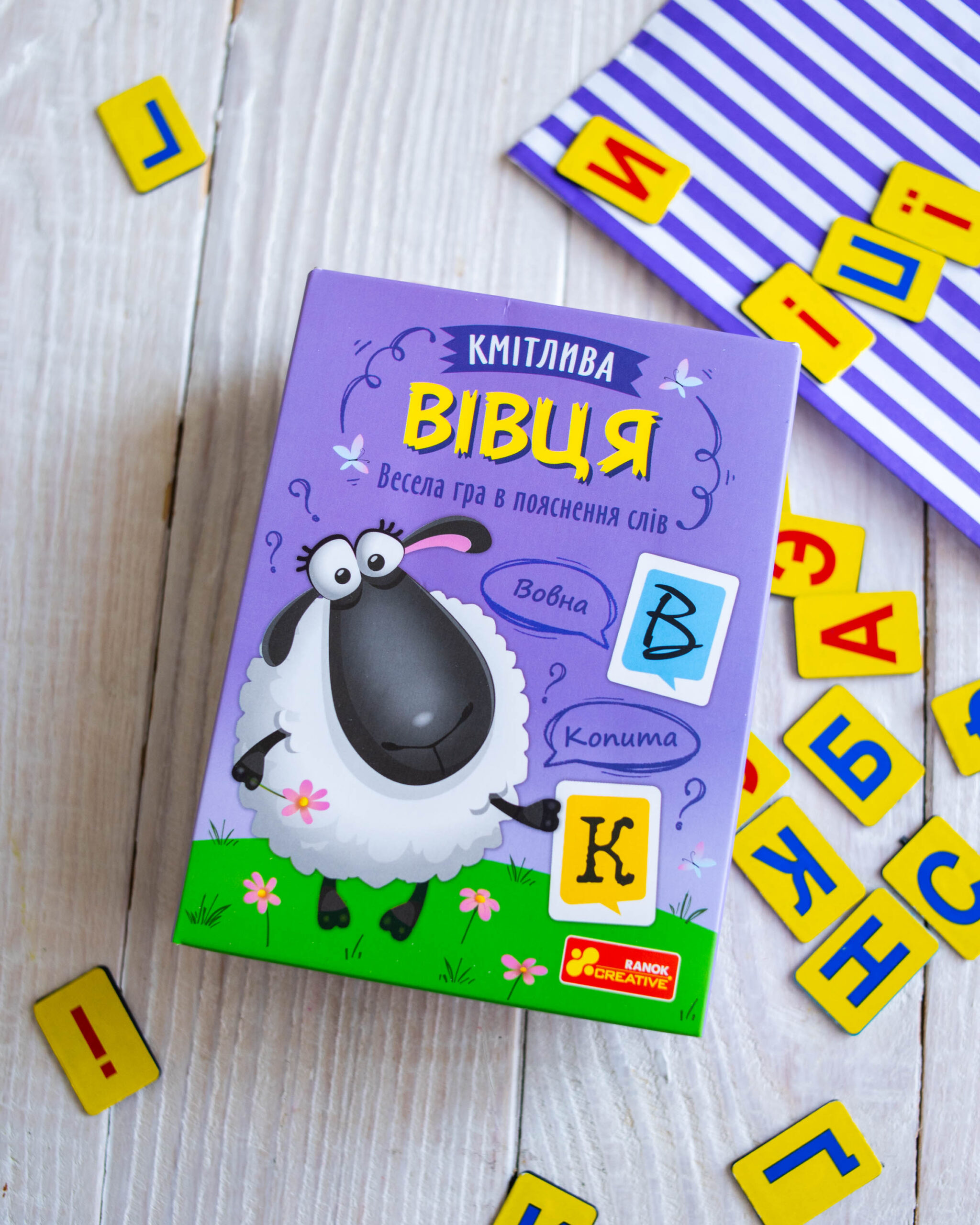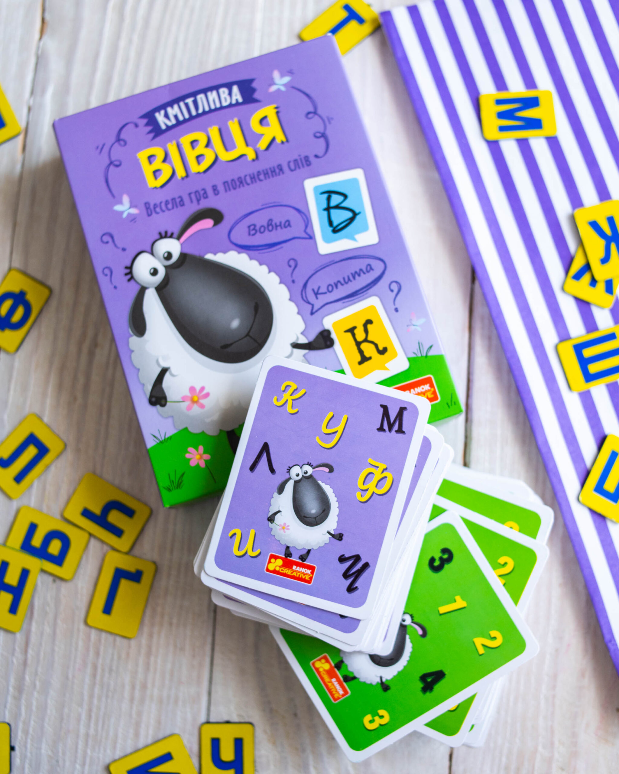 Випробуйте свою кмітливість у захопливій настільній грі “Кмітлива Вівця”! Це карткова гра, яка змусить мислити швидко та креативно!