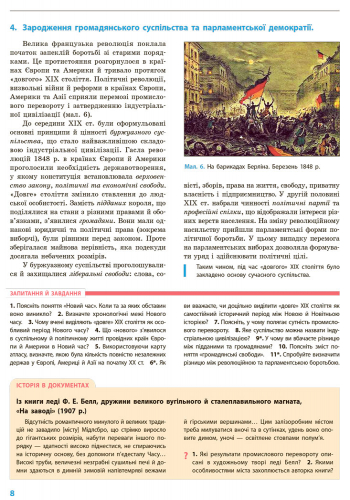 Підручник містить обов’язковий обсяг навчального матеріалу, усі необхідні теоретичні відомості й поняття. До методичного апарату входять фрагменти історичних джерел та запитання до них, додаткова інформація, а також різнорівневі завдання та запитання на осмислення й закріплення вивченого матеріалу. Схеми та ілюстрації підручника допоможуть краще засвоїти основні факти й поняття курсу.