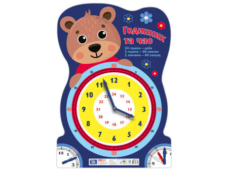 Демонстраційний матеріал “Я вивчаю час”, розроблений для того, щоб допомогти дітям легко та весело опанувати годинник. Цей набір – практичний комплексний інструмент для навчання! Яскравий годинник із милою білочкою створює позитивну атмосферу та заохочує дитину до навчання через гру.