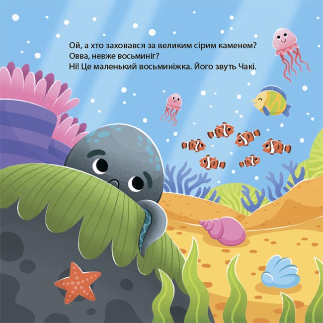 Восьминіжка Чакі переживає різні емоції. Він радіє, сумує, злиться, дивується, боїться. Знайомиться зі своїми почуттями й намагається керувати ними. Разом із Чакі маленькі читачі також дізнаватимуться про різні емоції та вчитимуться приймати їх і давати собі раду.