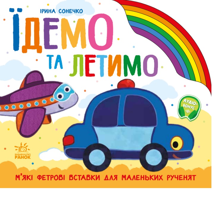 Яскраві малюнки, прості віршики та кумедні персонажі познайомлять вашого малюка з основними кольорами та деякими машинками, а різнокольорові фетрові вставки допоможуть розвинути моторні навички.