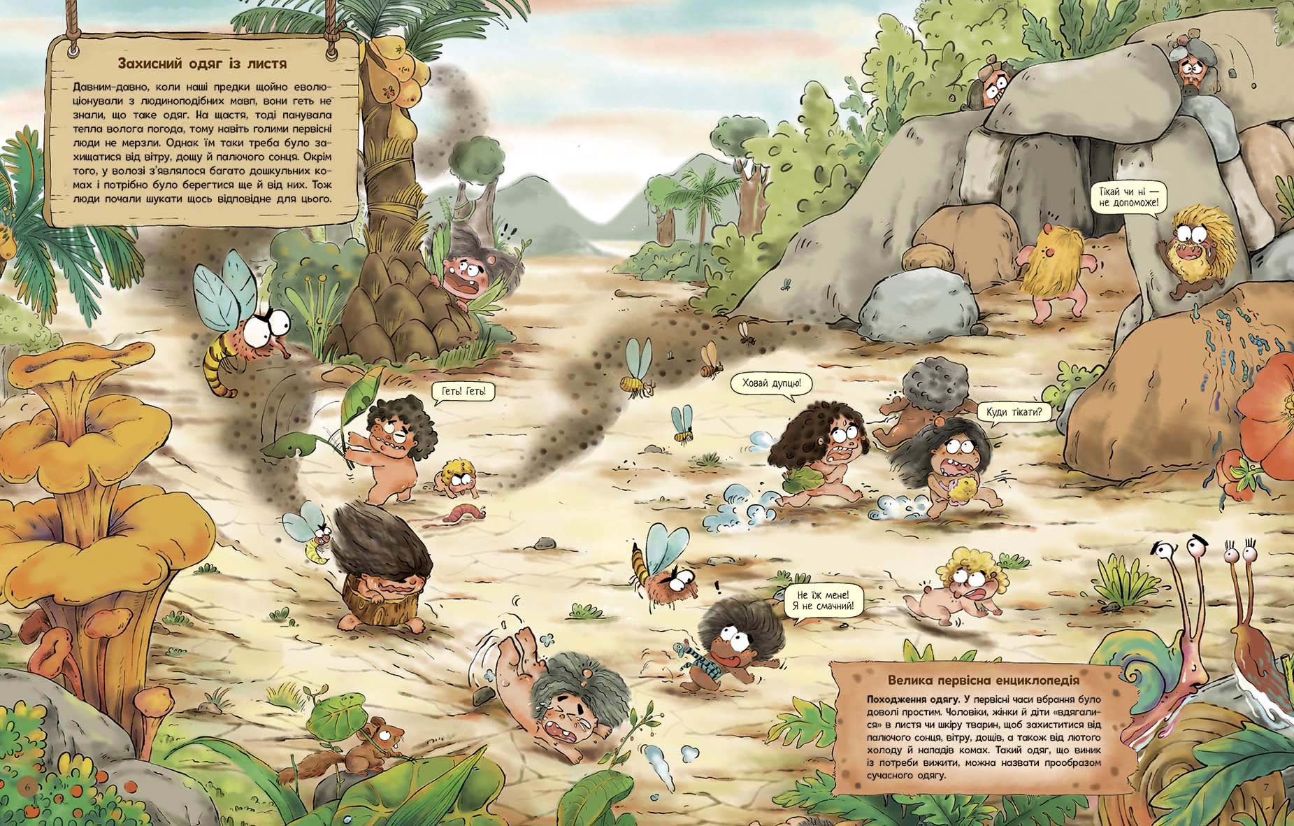 Ласкаво просимо до первісного світу! Із цим коміксом маленькі читачі проведуть цілий день тут із нашими пращурами. А звідти дізнаються, як люди створювали найперший одяг зі шкур тварин та кори дерев, щоб захиститися від холоду, спеки та комах. Згодом — чому наші предки почали вбиратися гарніше й навіть додавати прикраси. Малеча порівняє власне повсякдення із життям у первісні часи та зануриться в далеке минуле людства.
