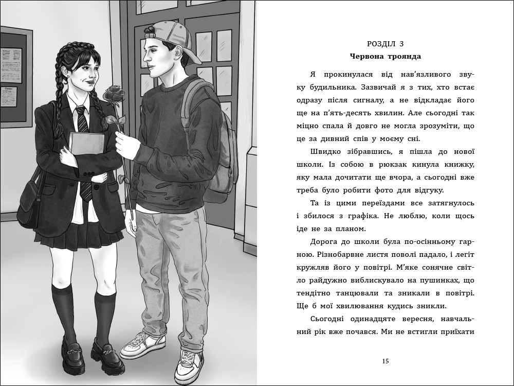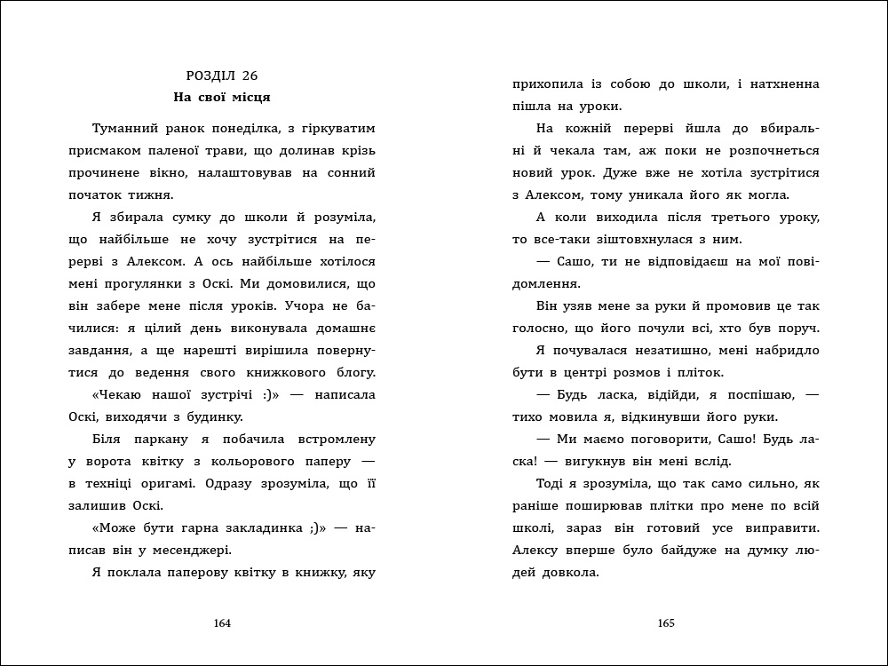 Саша — десятикласниця, букблогерка, новенька в школі. Розумна, іронічна, чутлива.